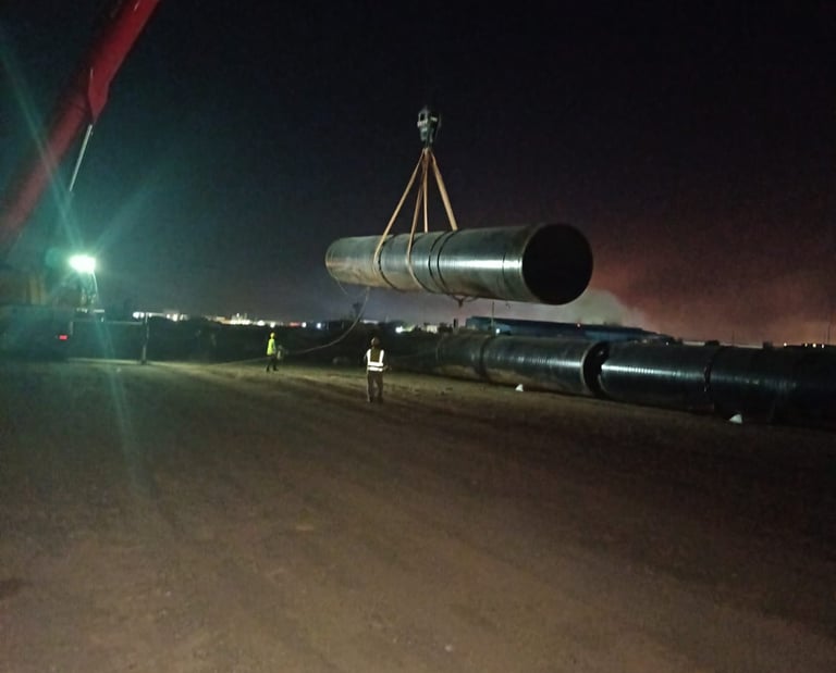 10 kms, offloading and placement of 80-inch carbon steel pipeline into the trench, fit-up, root and hot pass welding, NDT inspection and HSS coating for the completed pipeline works.