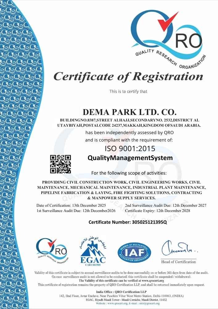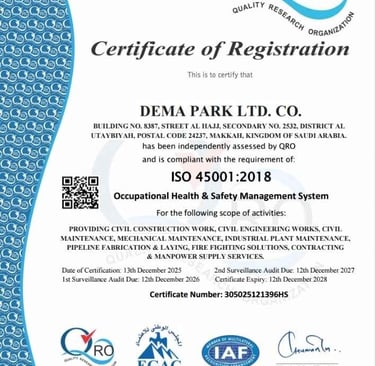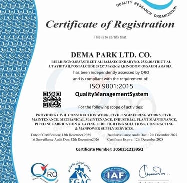 Welcome to Demapark, a trusted name in industrial excellence across the Kingdom of Saudi Arabia. With a commitment to quality, safety and efficiency, we specialize in delivering comprehensive industrial plant maintenance, robust civil construction, Mechanical, Pipe and Structure Fabrication, Electrical and highly skilled manpower supply tailored to meet the dynamic demands of the region’s growing industrial and infrastructure sectors.