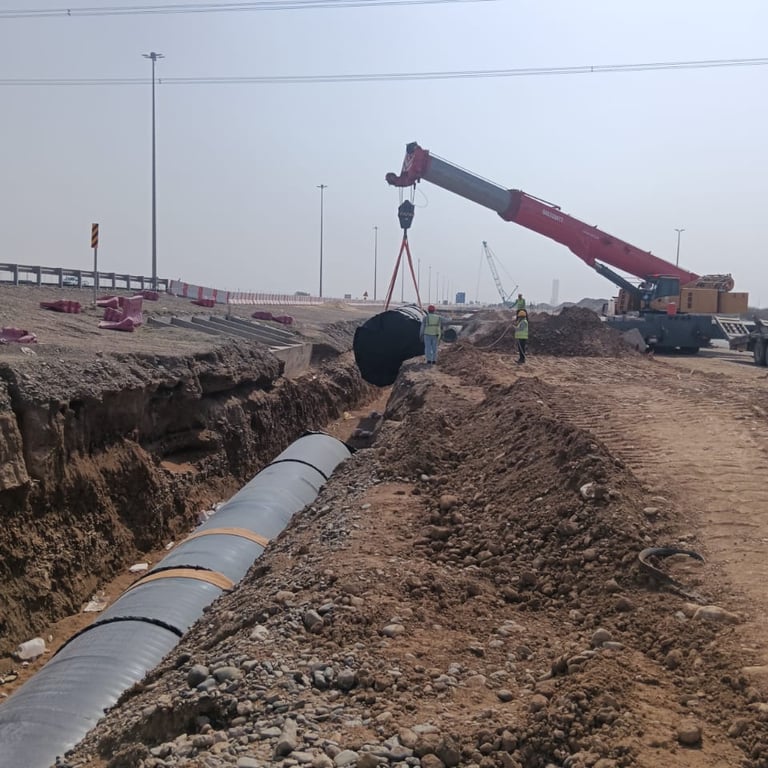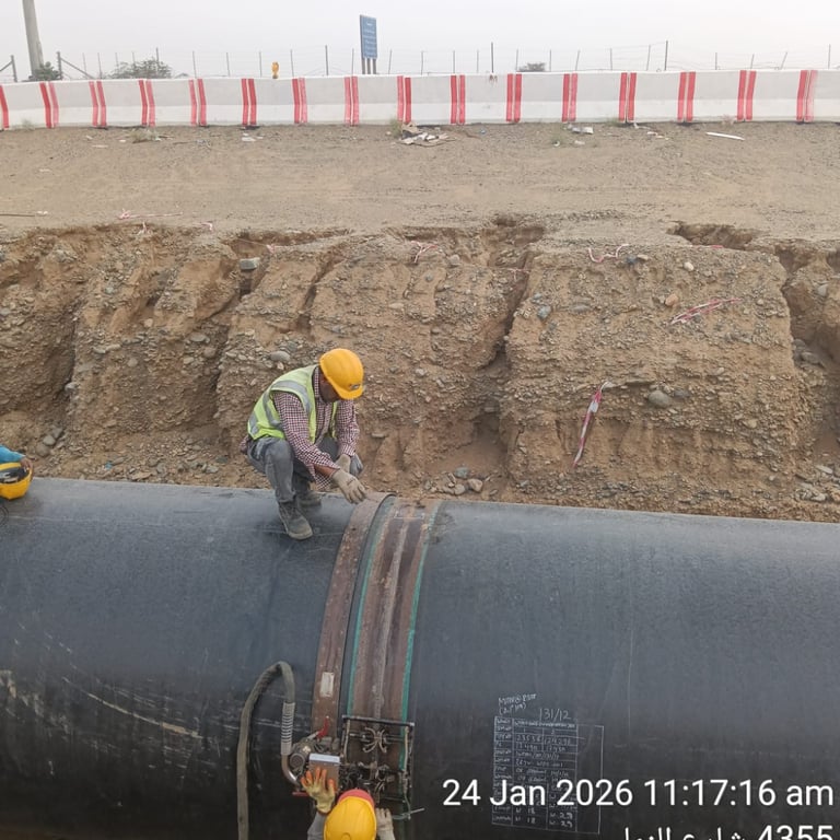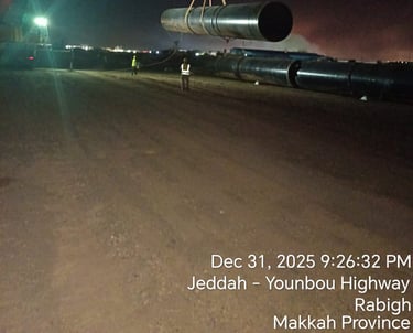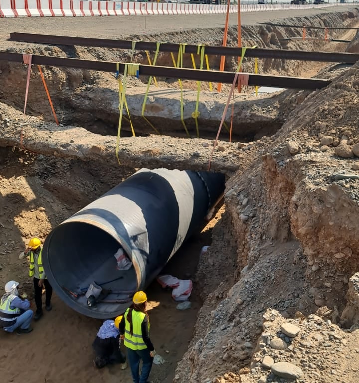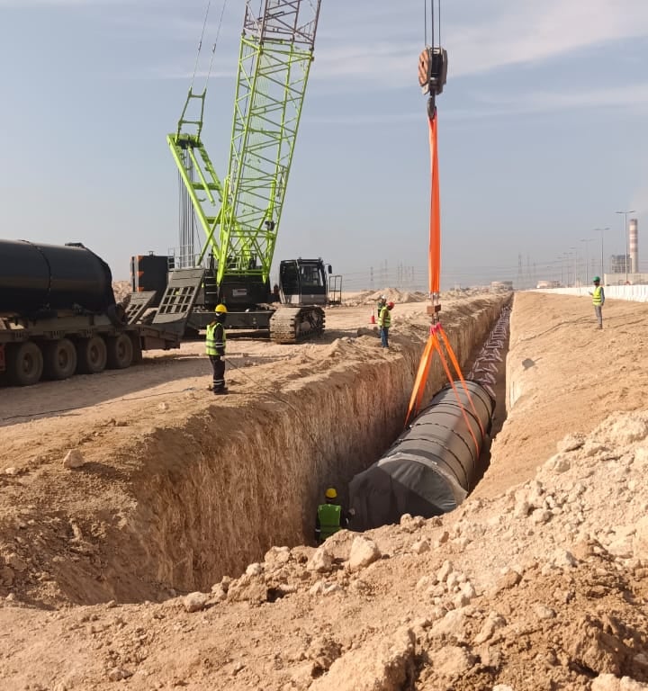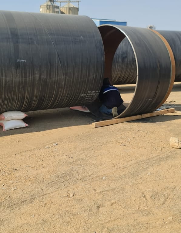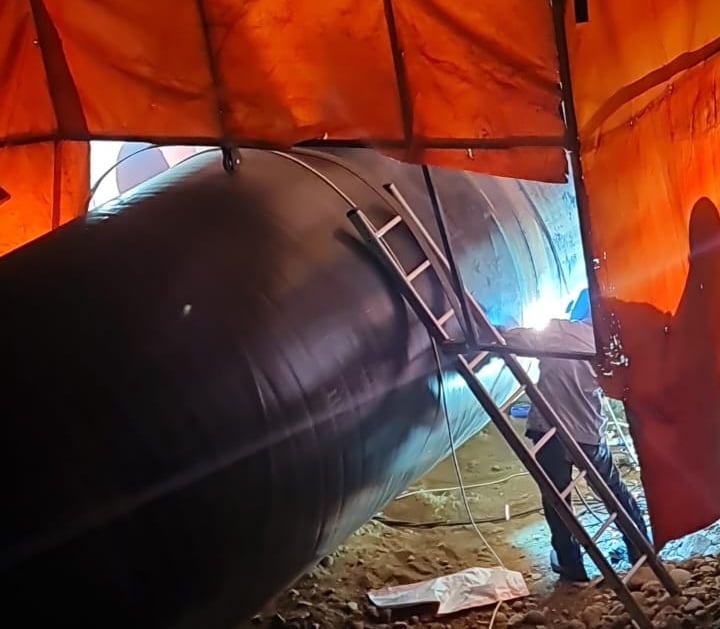 10 kms, offloading and placement of 80-inch carbon steel pipeline into the trench, fit-up, root and hot pass welding, NDT inspection and HSS coating for the completed pipeline works.
